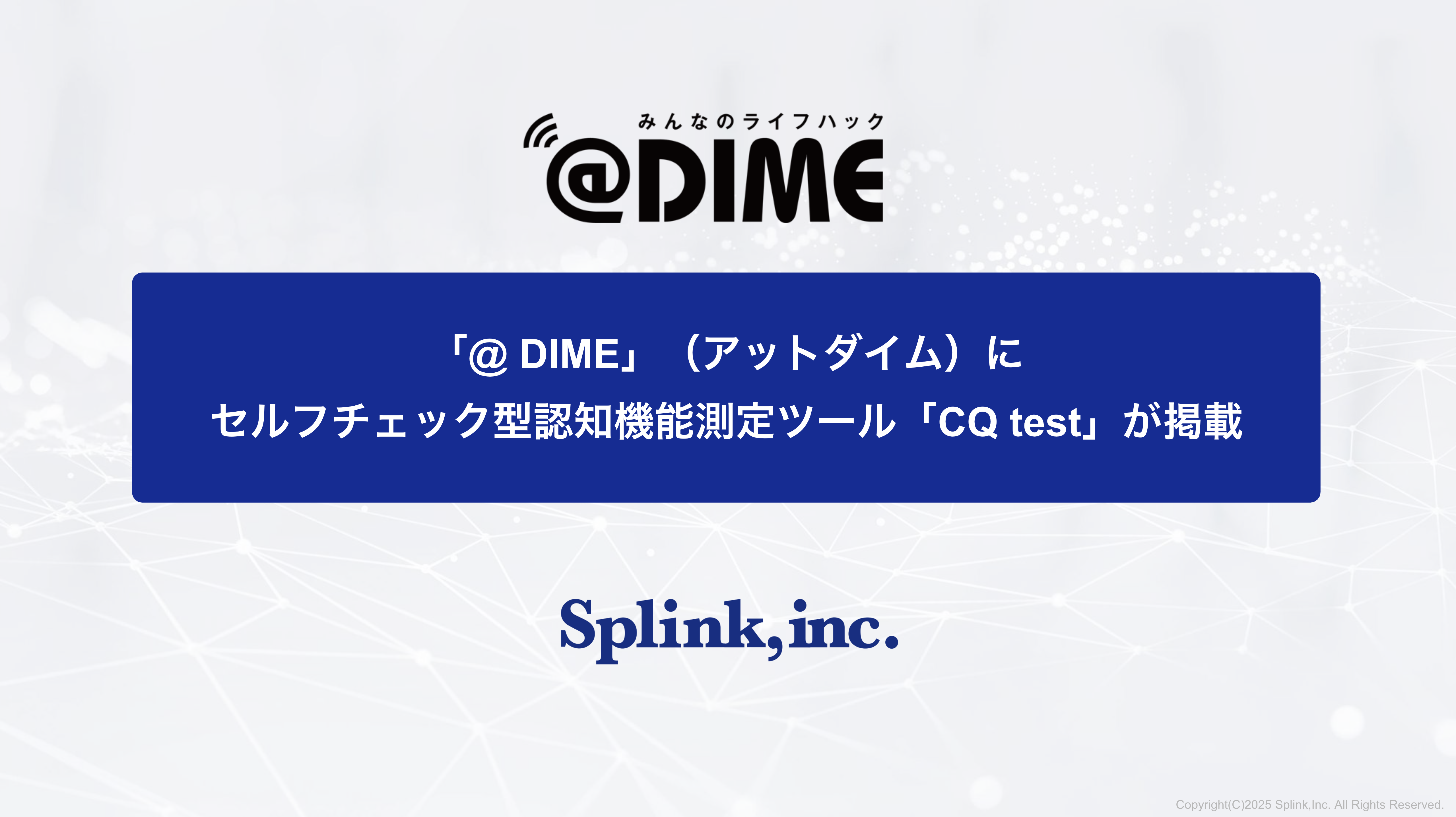 「@DIME」に、セルフチェック型認知機能測定ツール「CQ test」が掲載されました。