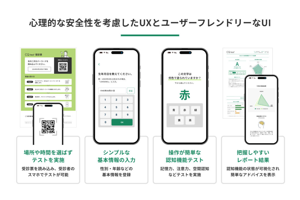 • セルフチェック型認知機能測定ツール「CQ test」の提供およびデータプラットフォームの構築
