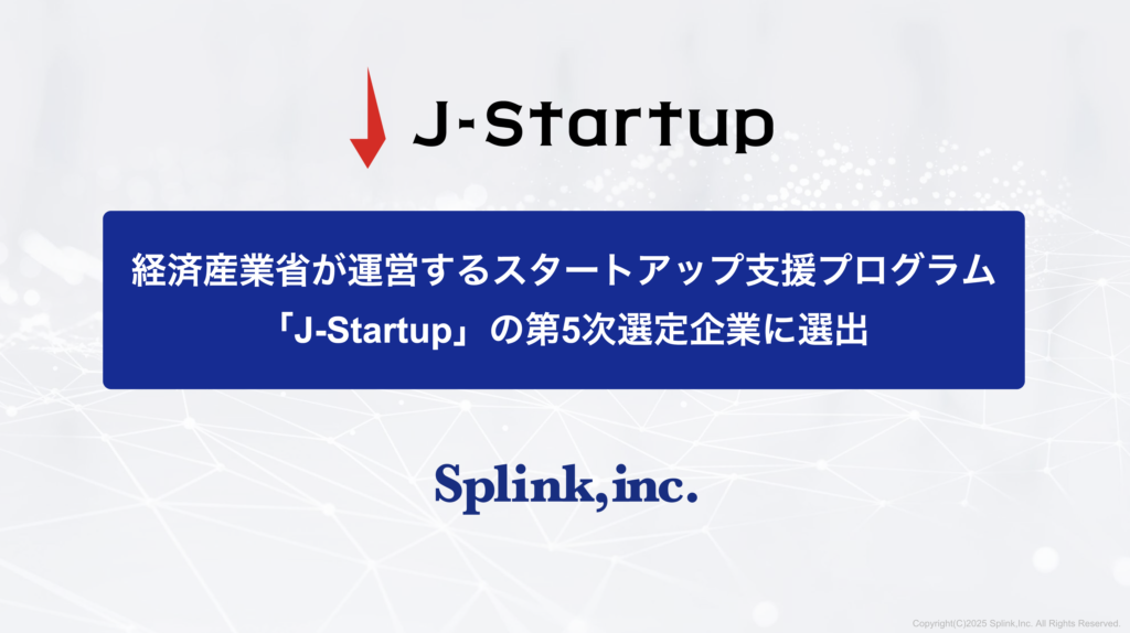 経済産業省が運営するスタートアップ支援プログラム「J-Startup」の第5次選定企業に選出 https://www.splinkns.com/2025-03-13/ https://www.splinkns.com/2025-03-13/#respond Thu, 13 Mar 2025 02:59:39 +0000 https://www.splinkns.com/?p=700
